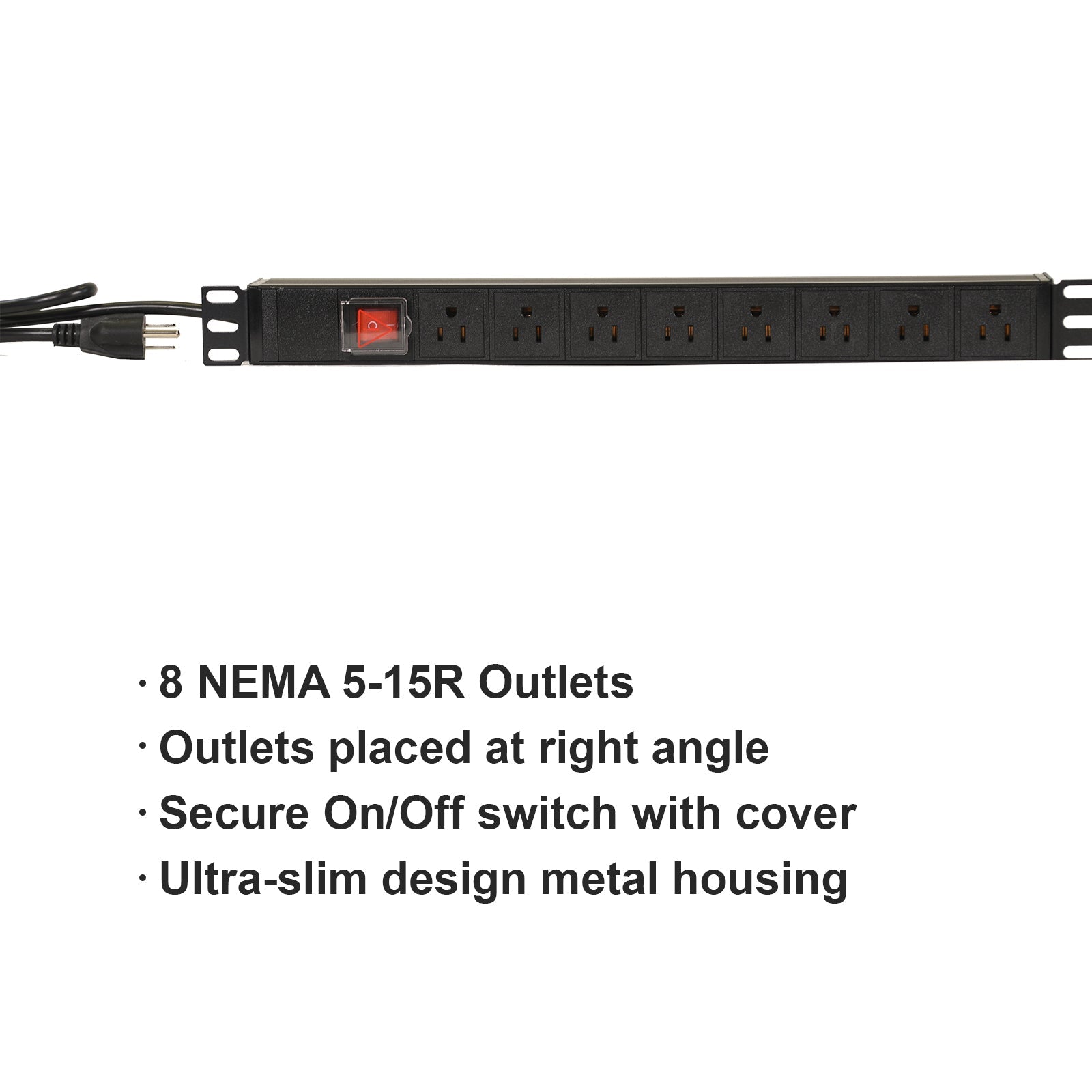 - 8 Outlets placed at right angle to accommodate bulky transformers