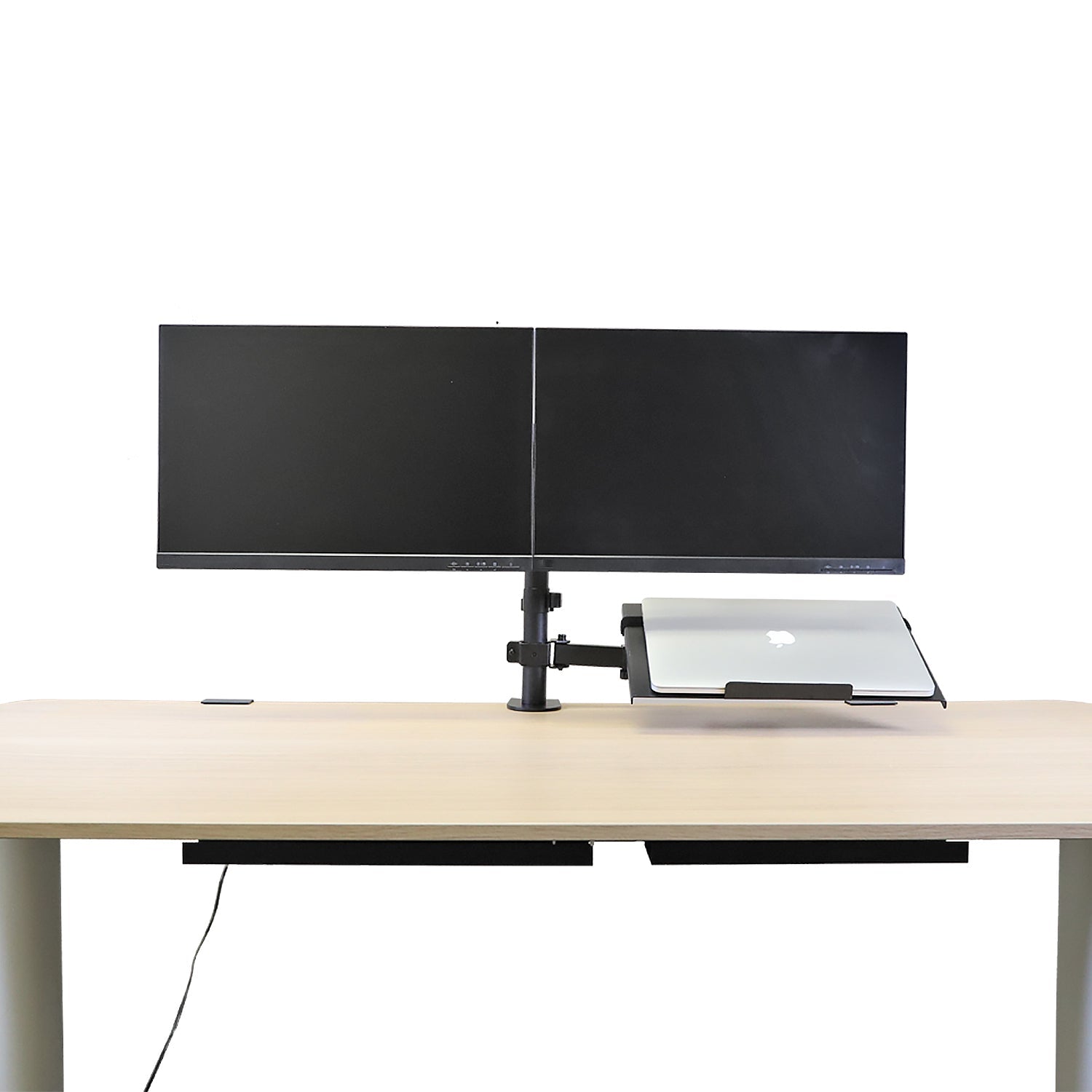 The universal monitor and laptop desk mount stand is designed to maximize your viewing experience and work efficiency. Raise your monitors and laptop to an ergonomic position, saves desk space and relieve the strain of your neck and wrist while typing.