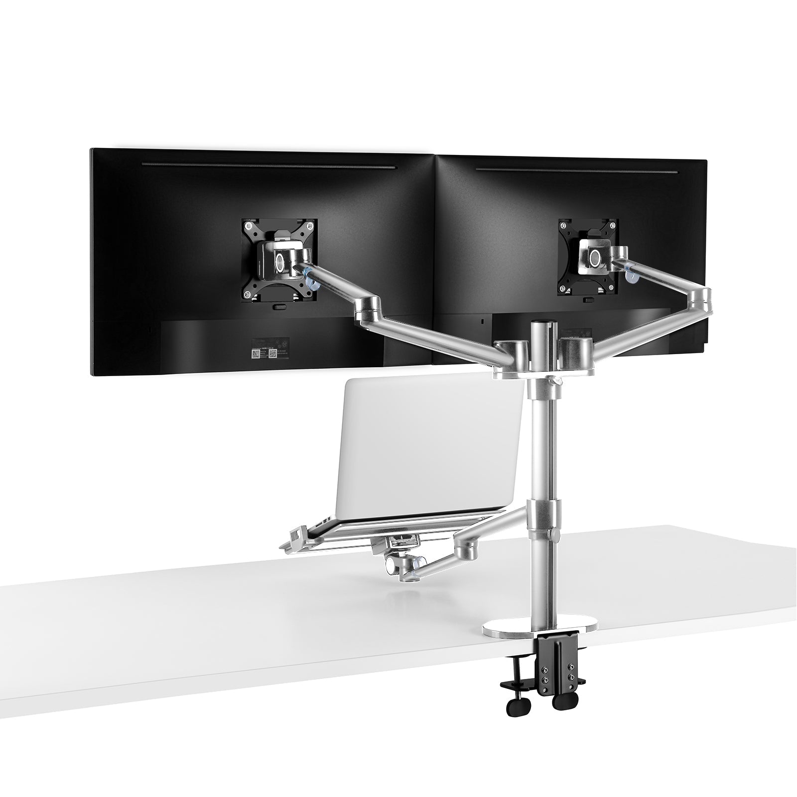 - Easy Installation: Mounting is a simple process with detachable VESA bracket and adjustable clamp. Package Includes: 1 x Dual Arm Mount with Laptop Tray, 1 x Mounting Hardware Kit, 1 x User Manual, 10 Year continuous and hassle-free technical support guarantee.