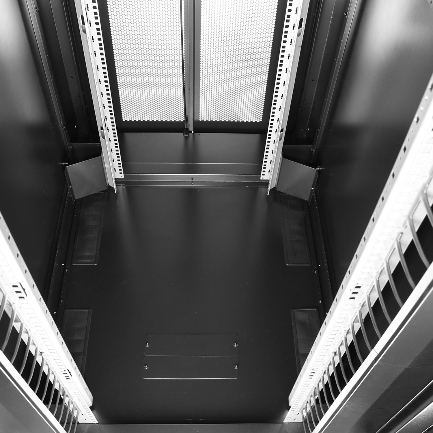 Front and rear doors: Both front and rear doors feature ample perforation to allow for optimal airflow to keep your equipment cool.