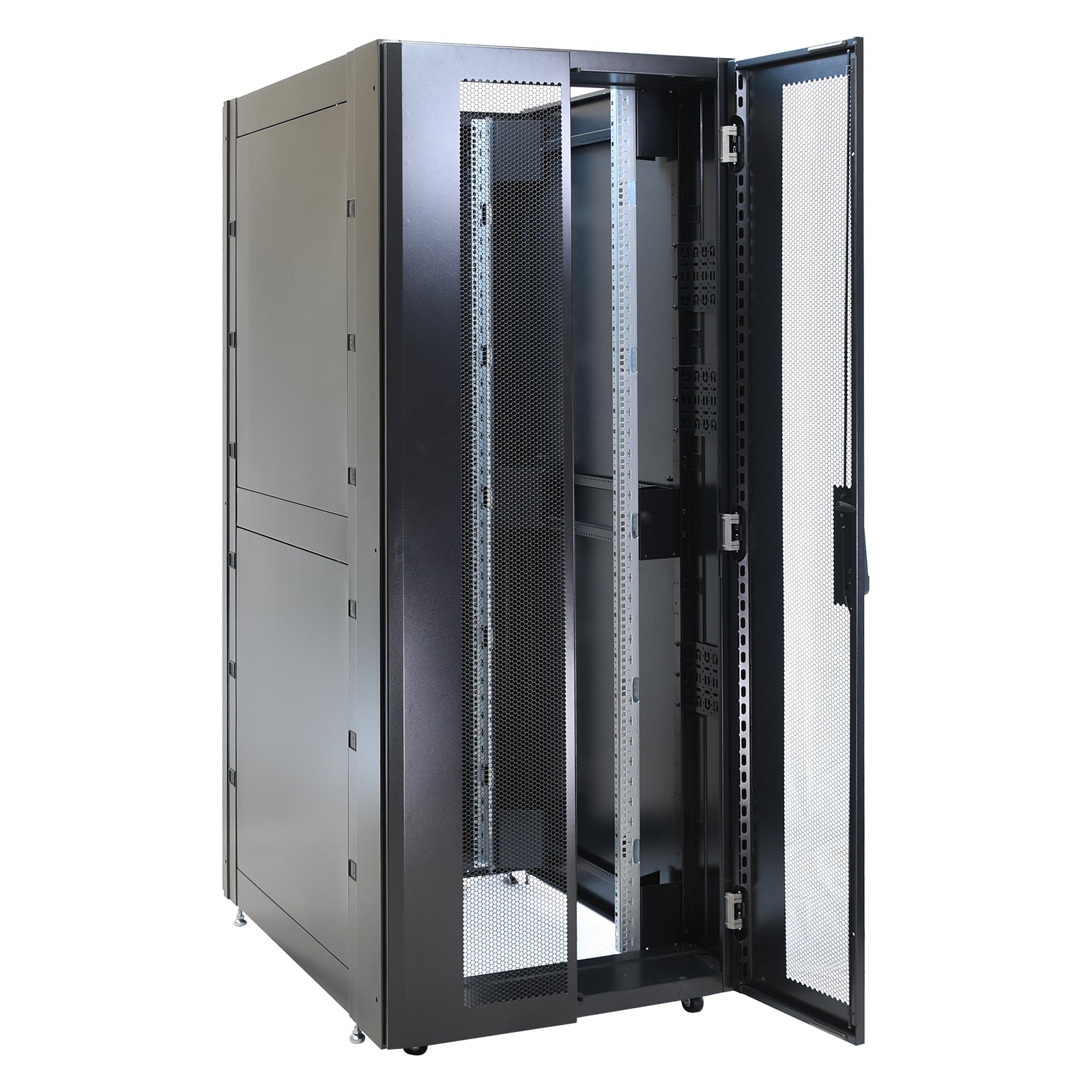 - Perforated front and rear doors optimized for increased ventilation of servers and networking equipment. Perforation rates up to 78%.
