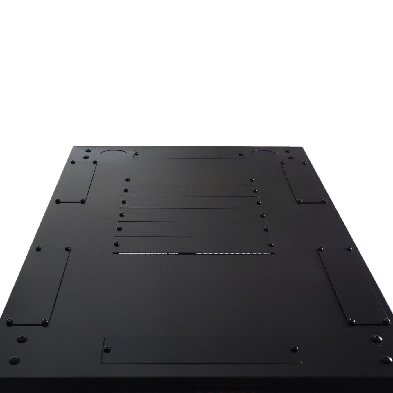 - Full-enclosure height rear accessory channels for zero-U mounting PDUs and cable management accessories.