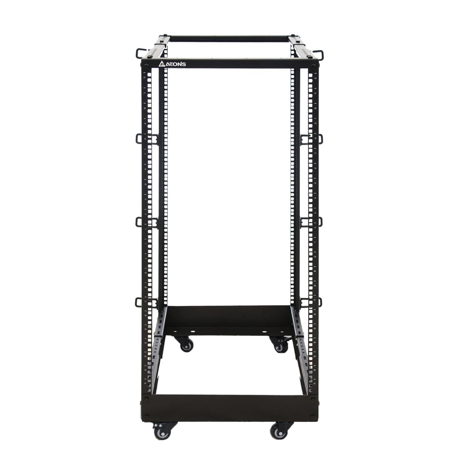 Aeons SR-Series 4-Post open frame rack is a simple solution for housing servers and other networking IT equipment that don’t require a lockable enclosure. It helps IT managers to better organize their equipment array while simplifying access for equipment installation and servicing. The depth adjustable frames with industry standards offer versatile solution for network server and other equipment. Made of high-quality SPCC Cold Rolled Steel with a powdered coated finish for durability.