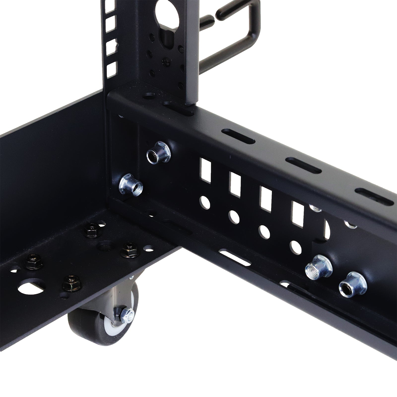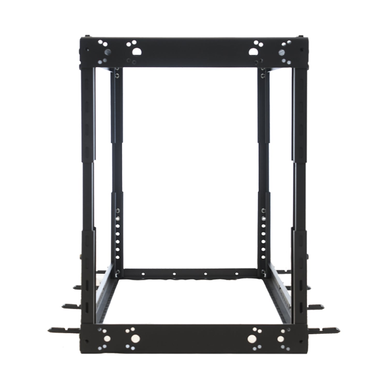 - The open frame design provides unobstructed airflow and easy access to equipment and cabling.