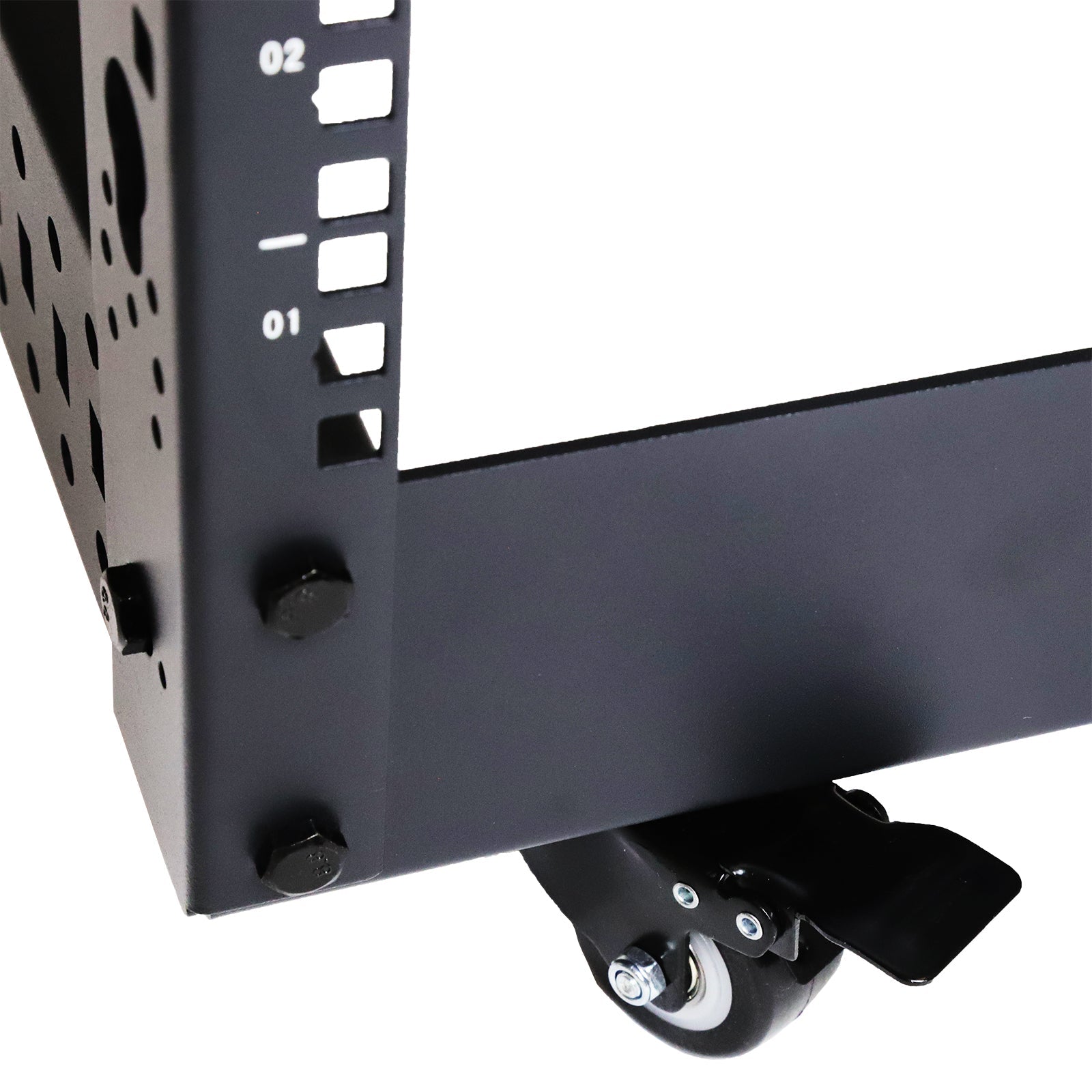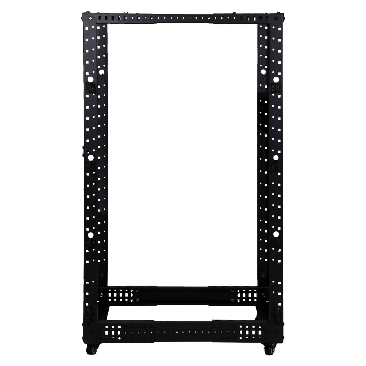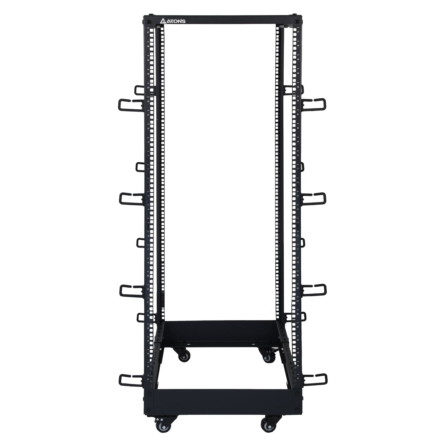 - The open frame design provides unobstructed airflow and easy access to equipment and cabling.