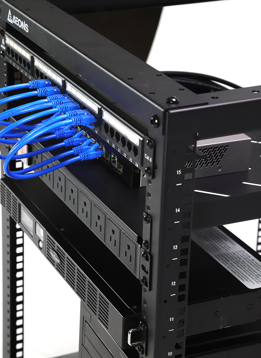 - Unobstructed back-end of equipment reduces hot spots for efficient operation and longer lifespan of networking equipment.