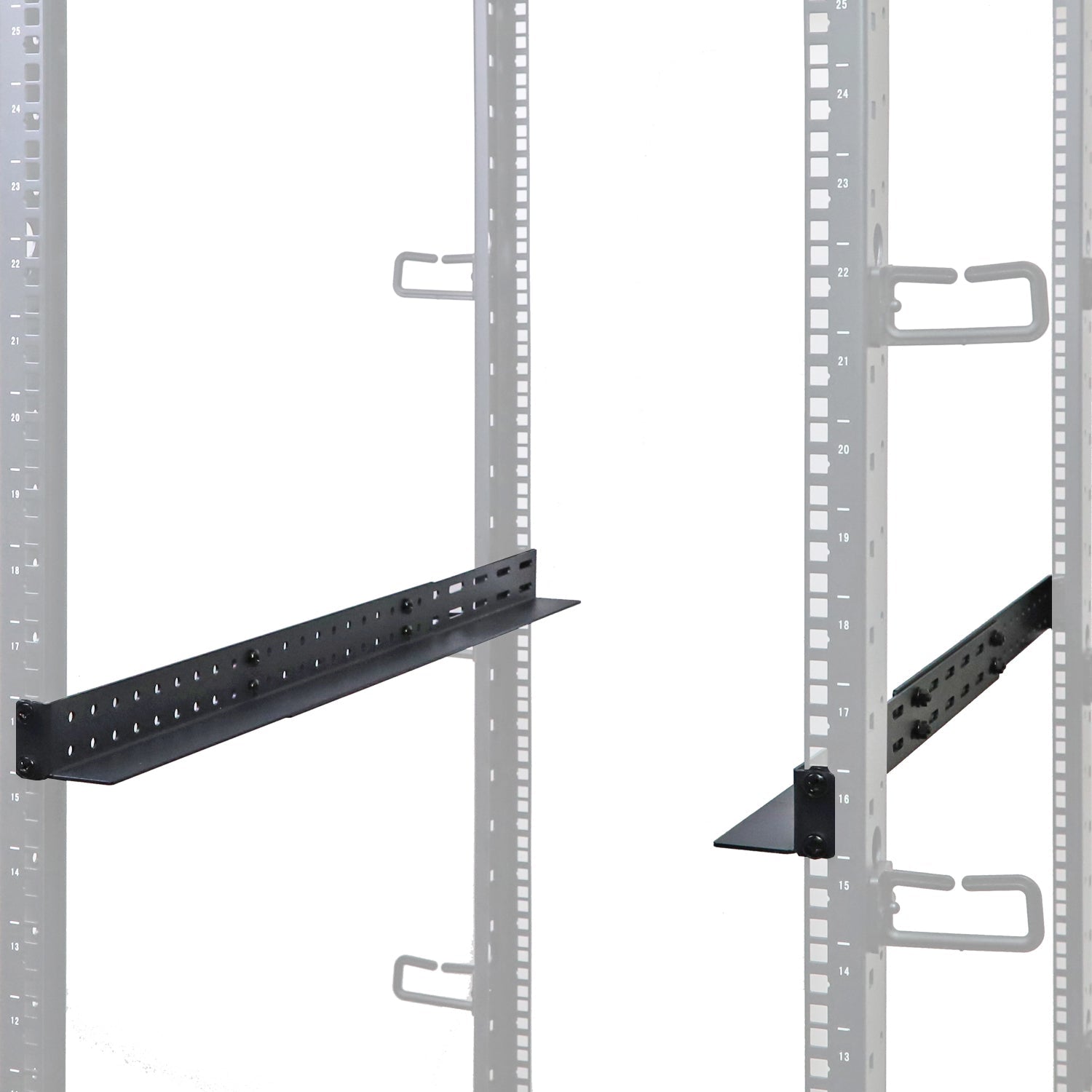 The Universal Heavy Duty Rack L-Rails are for use with all standard 19”, 23” and 30” Server Racks and Cabinets. Supply additional installation option for non-rack mountable equipment. Ideal for use with Apple, Dell, IBM, APC, Compaq and HP server/UPS equipment. Heavy duty construction with 14 gauge cold rolled steel to support at least 120 pounds and are finished with a satin black coating.