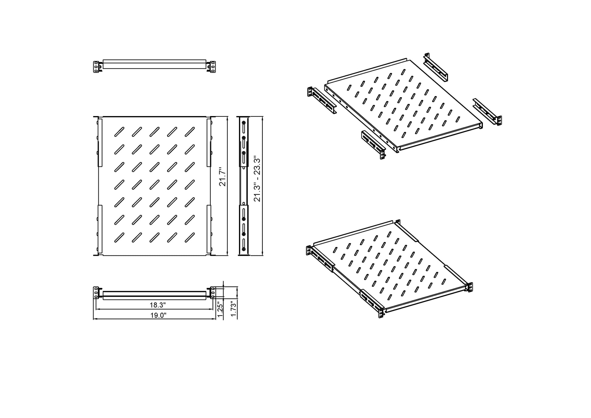 - Versatility: Adjustable mounting depth of 21.3 – 23.3in provides flexibility to fit various installation of rack and cabinets.