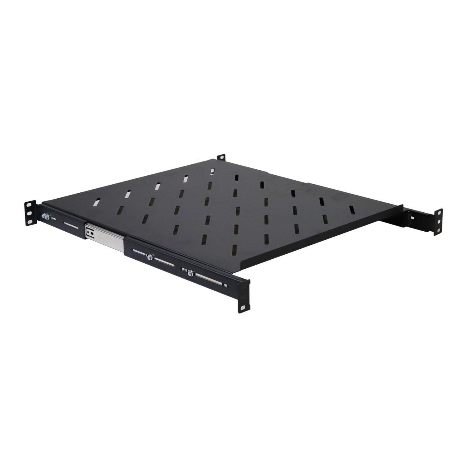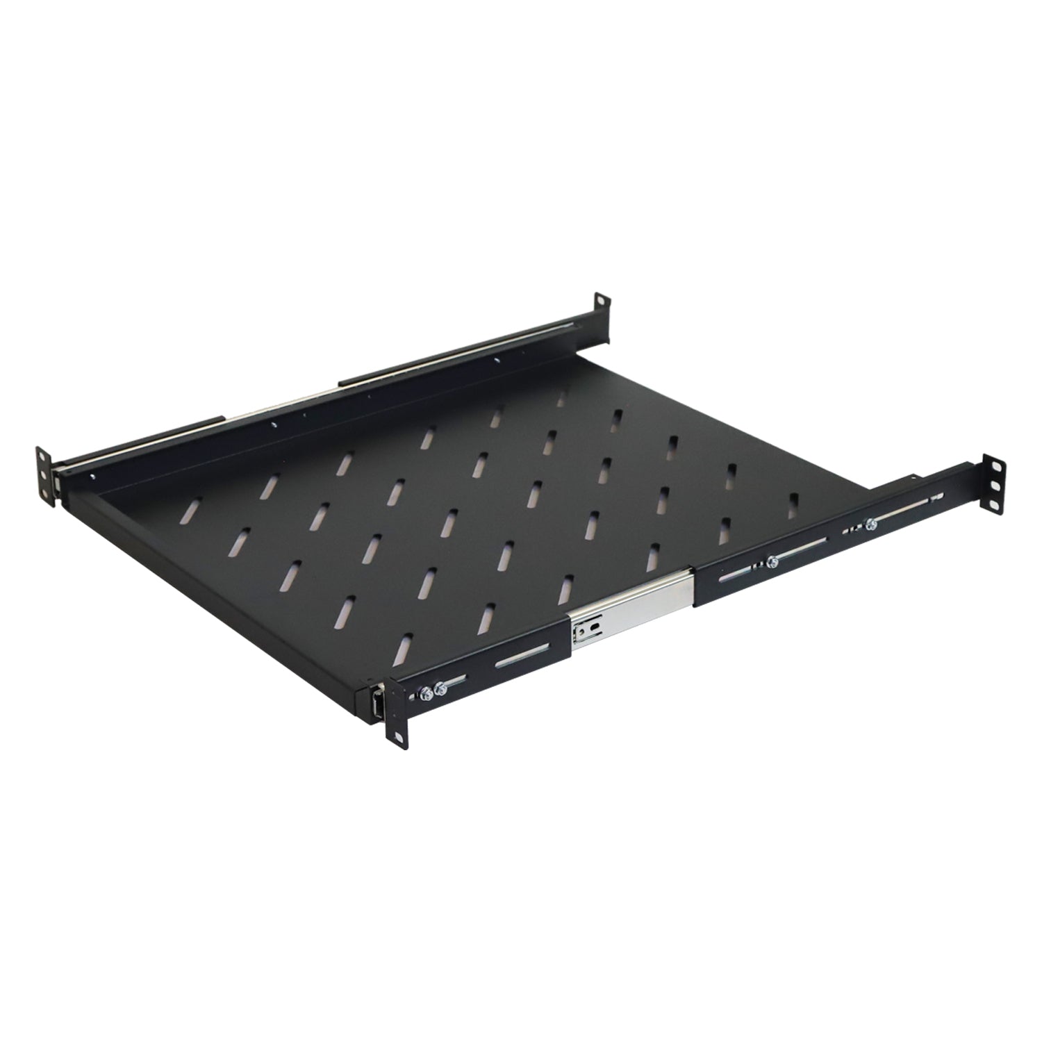 - Premium quality sliding shelf extends and allows easy access to the rear side of device. Slotted vent design provides good ventilation to keep devices cool.