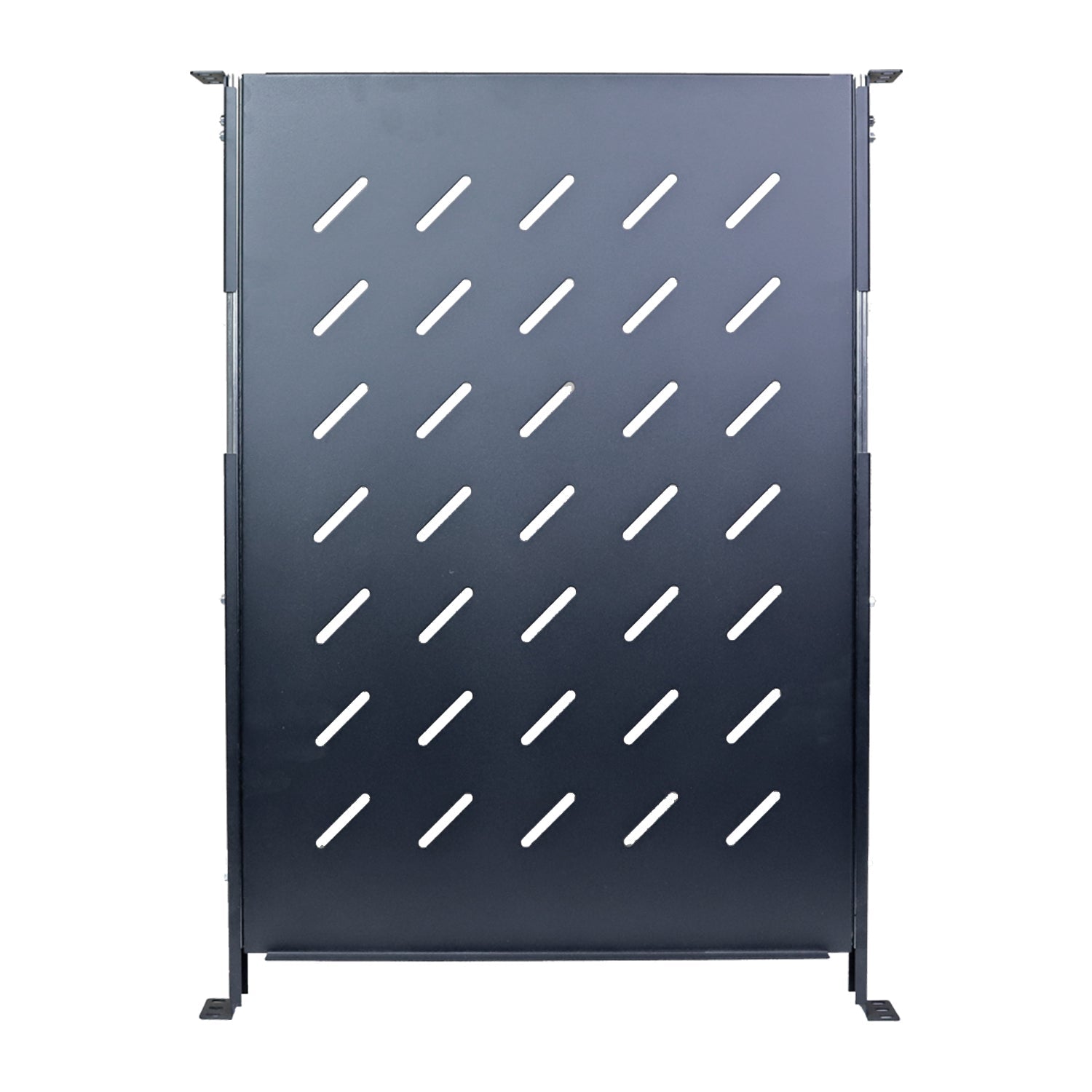 - Premium quality sliding shelf extends and allows easy access to the rear side of device. Slotted vent design provides good ventilation to keep devices cool.