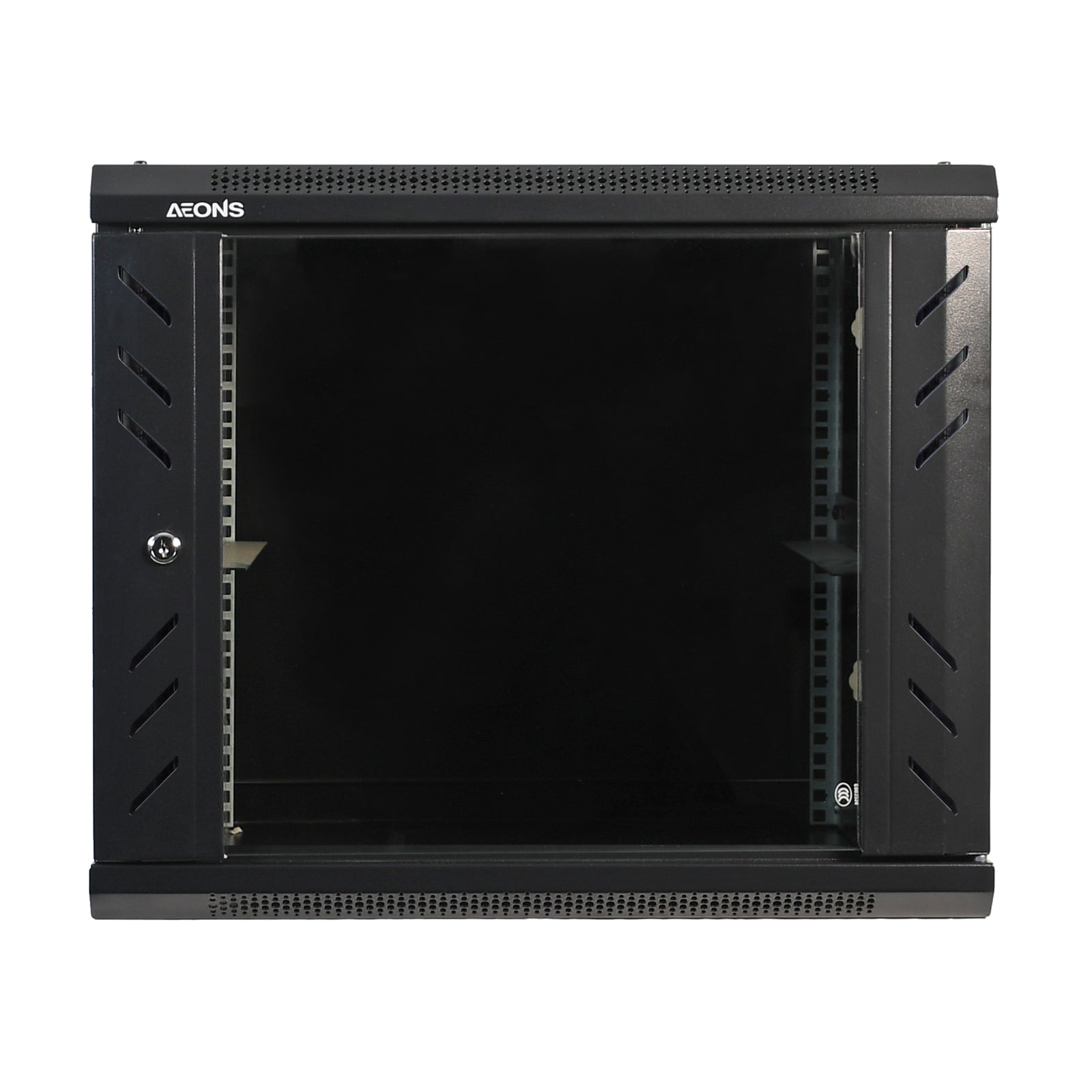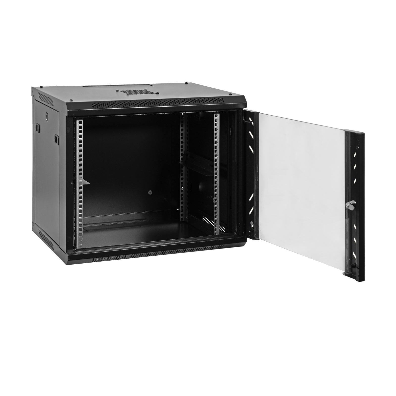 - Reinforced, lockable front door and side panel (optional lock) ensure equipment security.